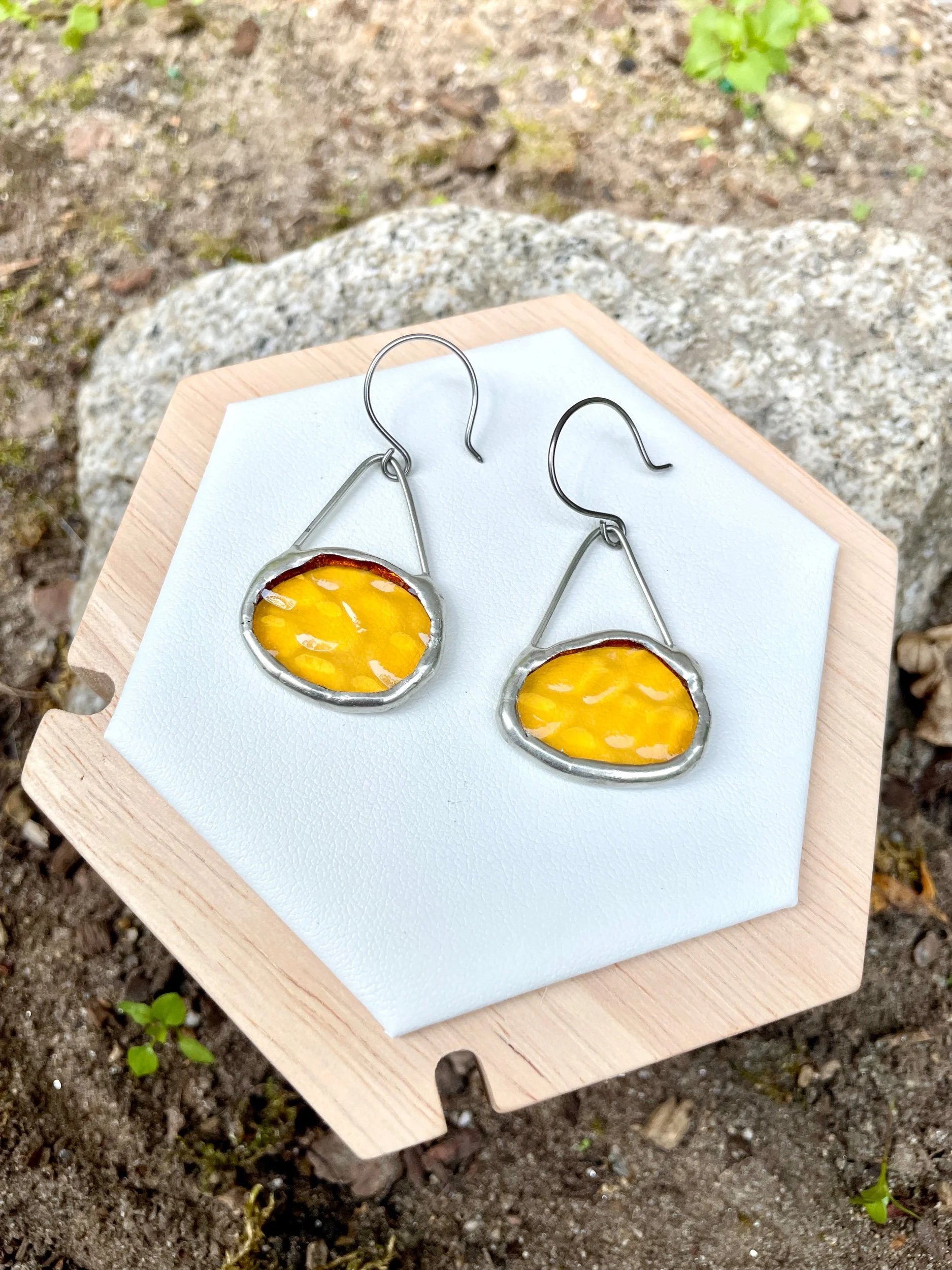 One of a kind stained glass piece. Each glass piece is made differently with a variety colors, textures and patterns. So none are alike! 💛