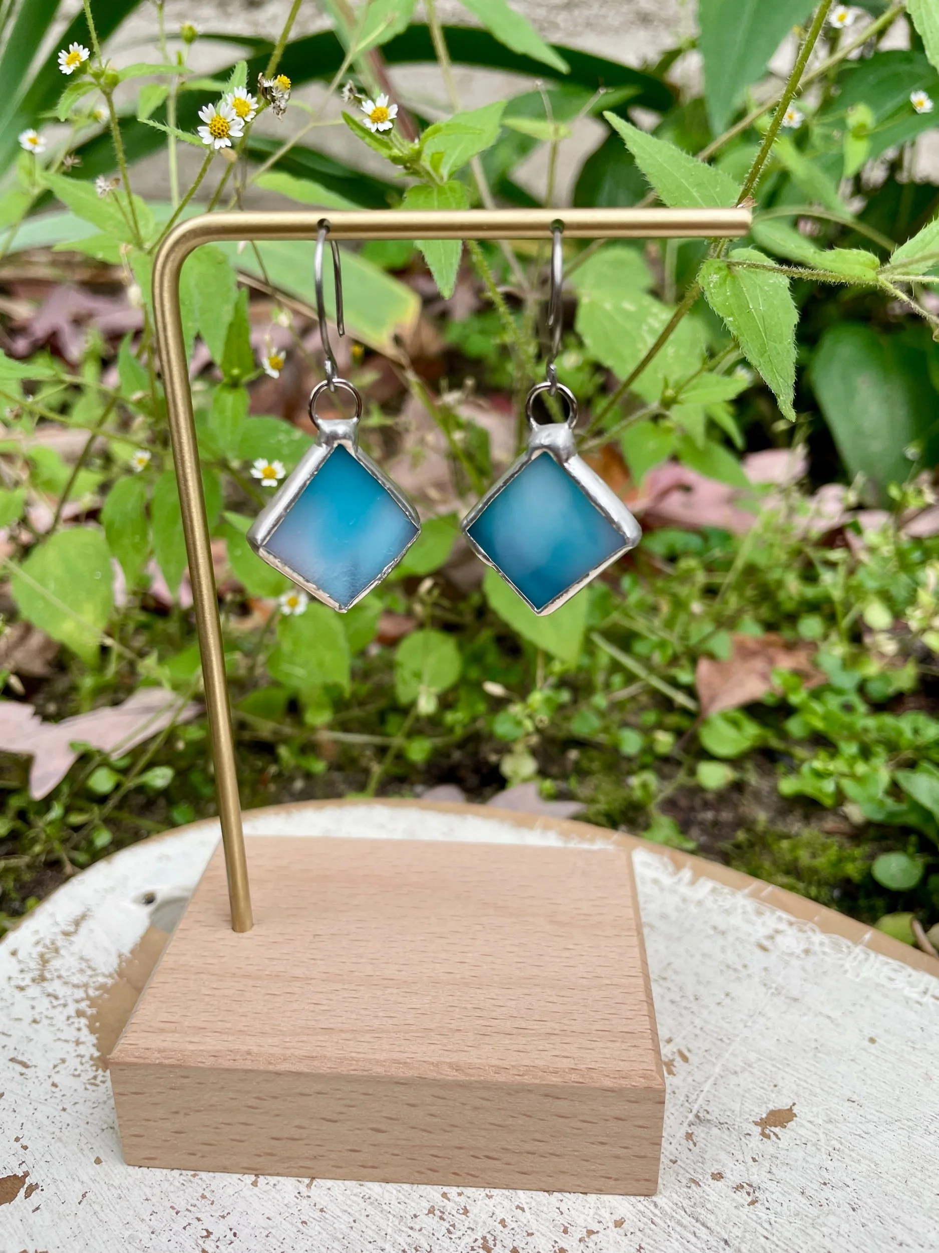 Blue Diamond Stained Glass Earrings