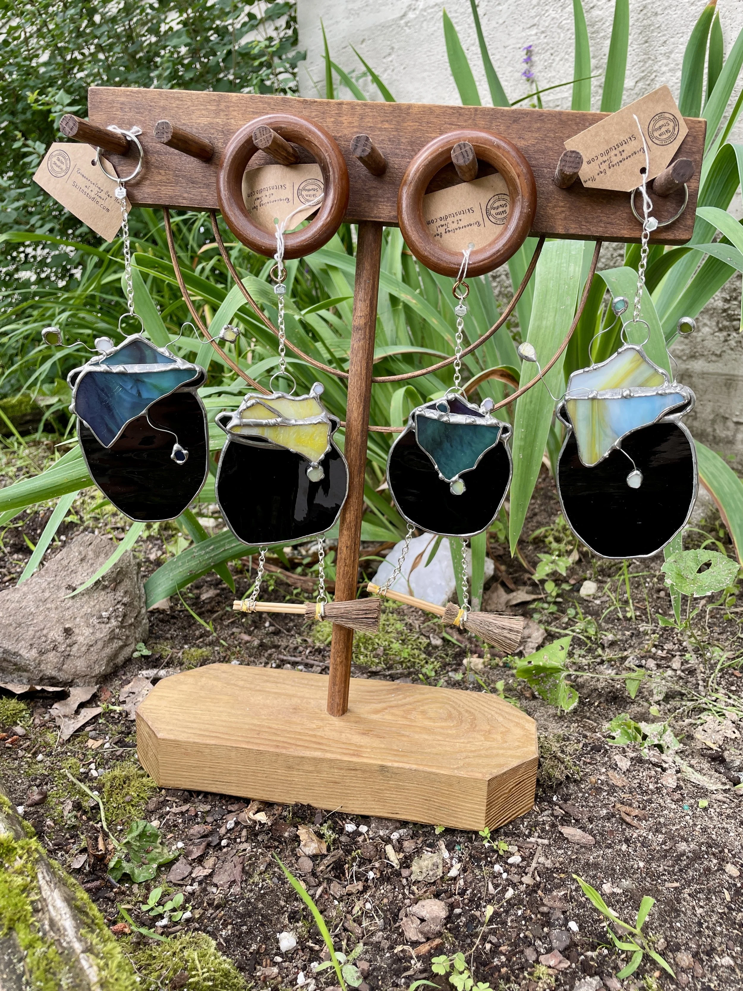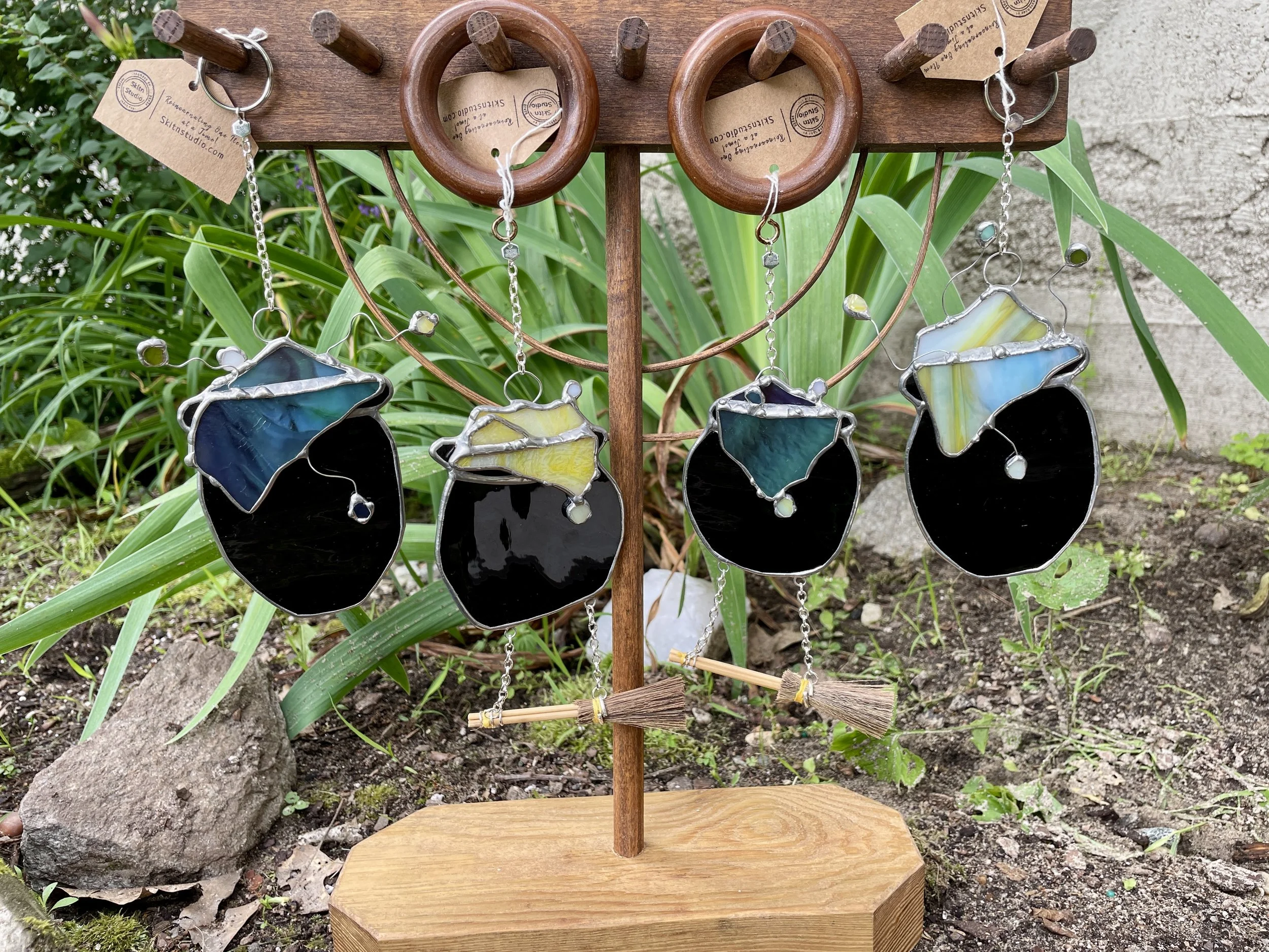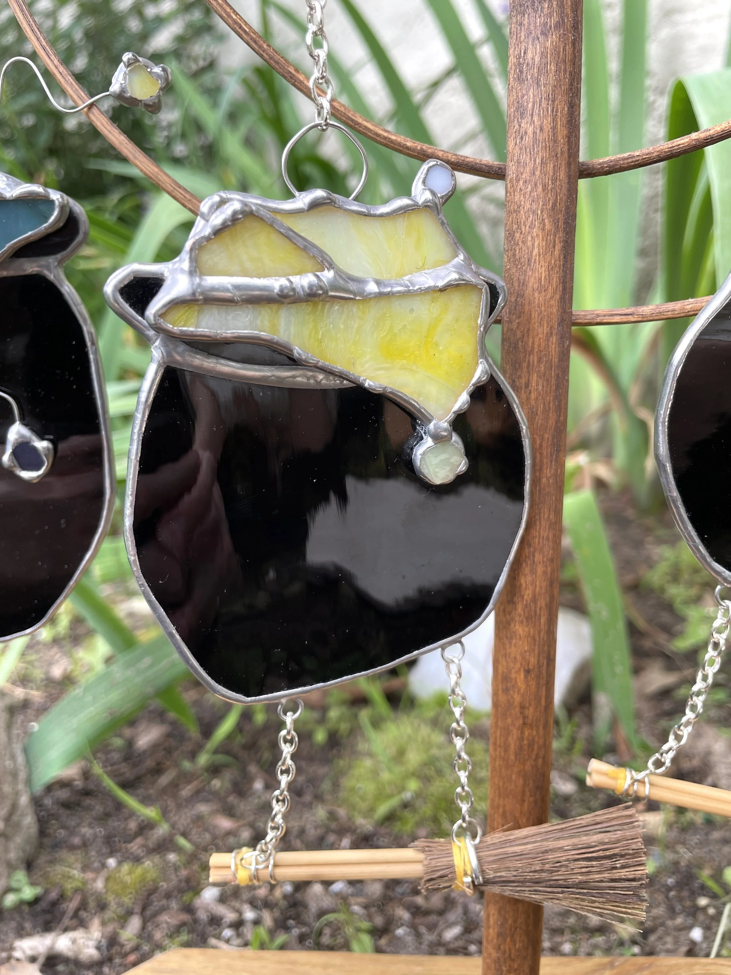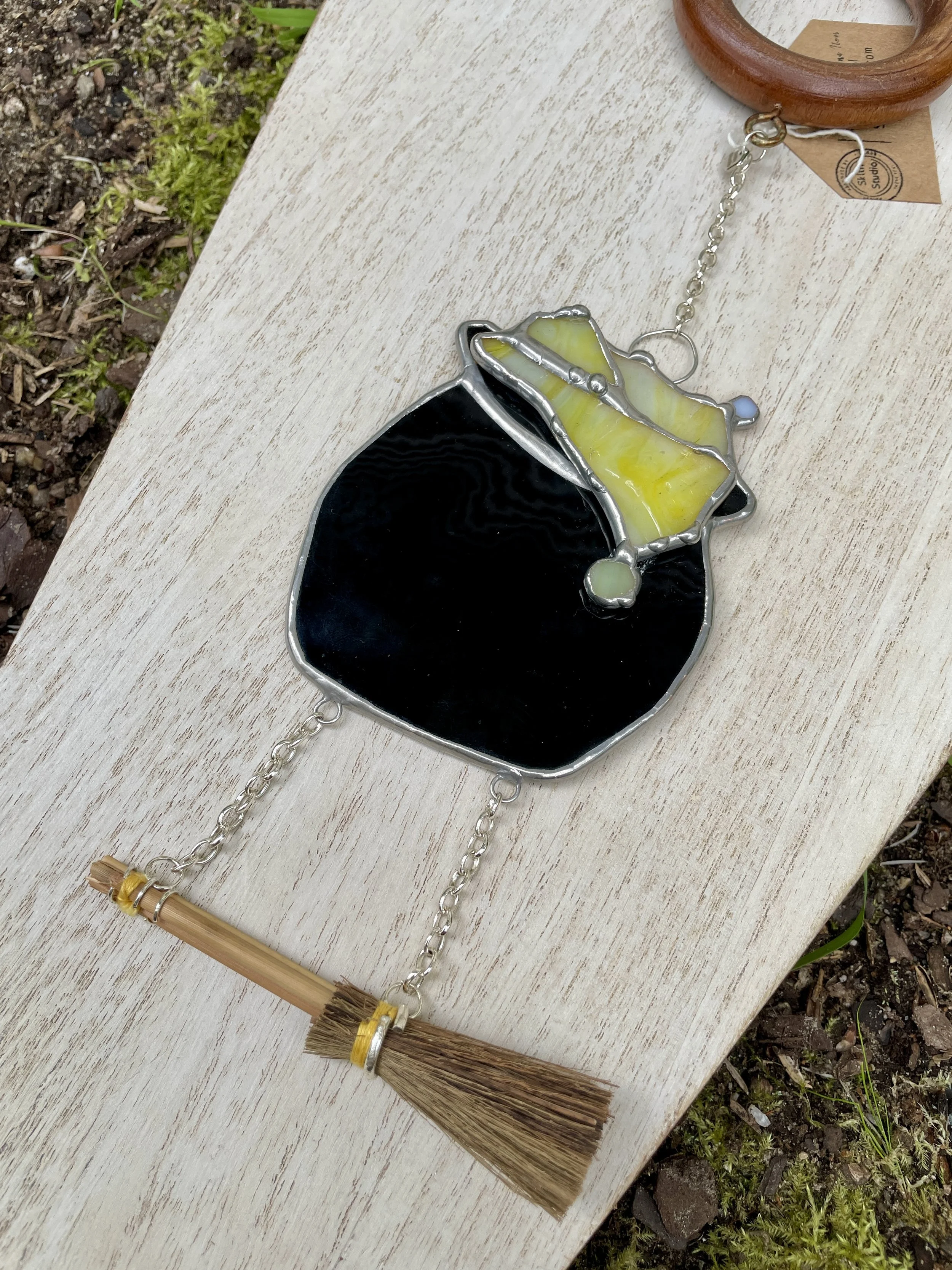 Yellow Stained Glass Cauldron with Broom